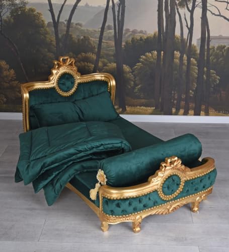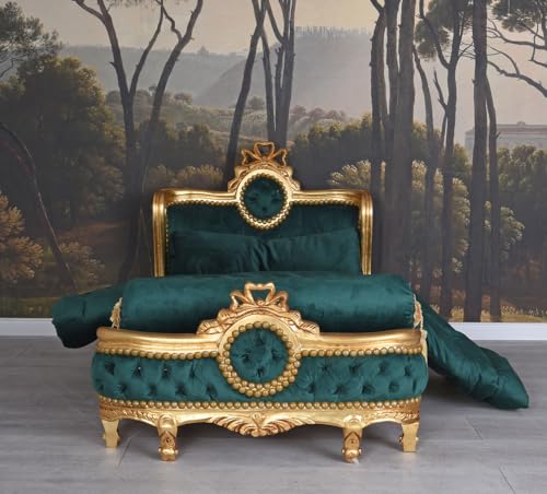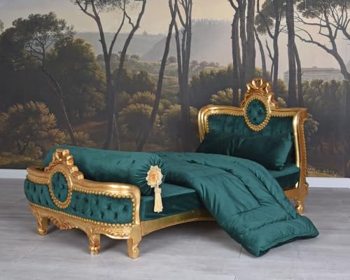 Das elegante Kinderzimmer Sitzmöbel „Chateau de Versailles“ ist ein barockes Mini-Bettsofa, das den Glanz vergangener Epochen mit kindgerechtem Komfort verbindet. Inspiriert vom französischen Rokoko des 18. Jahrhunderts, präsentiert sich dieses kleine Sofa in prachtvollem Samt in Smaragdgrün, der jedem All einen Hauch königlicher Eleganz verleiht. Das stabile Holzgestell wird in traditioneller Handarbeit gefertigt und mit detailreichen Ornamenten verziert. Zwei abnehmbare Kissen und eine passende Decke sehen nach zusätzlichen Komfort und Betonung auf etwas legen den luxuriösen Charakter des Möbels. Ob als Spielsofa, Kuschelcouch oder Kinderbett, dieses Sitzmöbel bietet All zum Träumen, Lesen und Entspannen. Perfekt für das stilvolle Kinderzimmer, dennoch aka als dekoratives Highlight in Boutiquen, Fotostudios oder Ankleideräumen. Maße: Gesamthöhe ca. 70 cm Breite ca. 134 cm Schlund ca. 70 cm Sitzhöhe ca. 23 cm Sitzbreite ca. 120 cm Sitztiefe ca. 68 cm Material: Holz handgearbeitet, Samt in Smaragd Grün Ablieferung erfolgt ohne Dekoration.