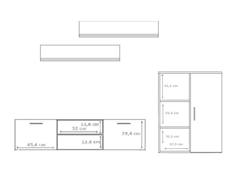 PRAKTISCHER STAURAUM – der Wandschrank Szopen bietet reichhaltig Stauraum und besteht aus einem Fernsehschrank H 35 x B 150 x T 40 cm, einem Standschrank H 105 x B 80 x T 31 cm, 2 Hängeregalen H 20 x B 100 x T