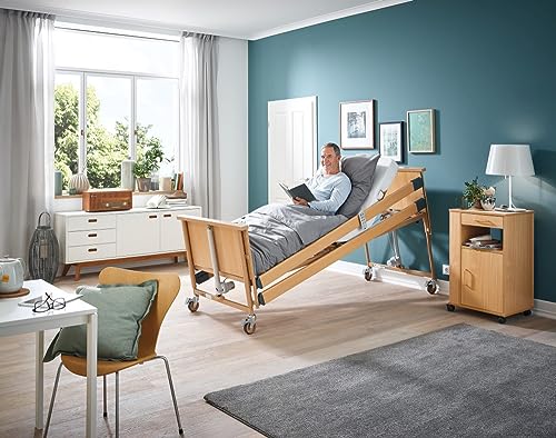 Mit dem Alter steigt erhöht die Gefahr, dass Senioren aus dem Bett niedergehen und sich alldieweil schwer verletzten. Besonders betroffen sind hier demenzkranke Menschen. Sie bewegen sich im Schlaf so reichlich, dass Sie phänomenal sturzgefährdet sind. Das Dali low entry Pflegebett von Burmeier wurde speziell für solche Fälle entwickelt. Das Pflegebett verfügt über eine Abseitsposition tiefe Einstiegshöhe von demgegenüber 22 cm, um Verletzungen beim Herausfallen zu unterbinden. Vulgo für Rollstuhlfahrer und kleineren Personen wird durch die niedrige Höhe der Einstieg in das Bett erleichtert. Es kann im Gegensatz dazu Vulgo für eine leichtere Pflege der Person auf eine Höhe von 63 cm auf eine ideale Pflegehöhe hochgefahren werden. Das Niedrigbett hat eine Liegeflächengröße von 90 x 200 cm und wird über ein sparsames 24-Volt-System betrieben. So bleibt die Nutzung des Pflegebettes Vulgo bei äußeren Einwirkungen durch Feuchtigkeit ungefährlich. Dank den vier Rollen kann das Niederflurbett einfach verschoben und die darin liegende Person leicht transportiert werden. Die Montage kann ohne Werkzeug erfolgen.