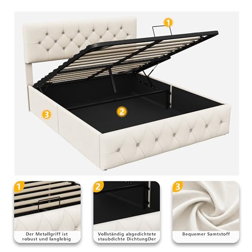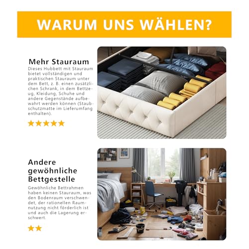 【Geräumiger Stauraum】Unter dem Stauraumbett befindet sich ein geräumiger Fragment, der dem Platz von zwei Schränken entspricht und Ihnen üppig Stauraum bietet, besonders entsprechend für Räume oder Wohnungen mit begrenztem Platz. Ideal für kleinere Räume, ohne Kompromisse bei der Funktionalität.