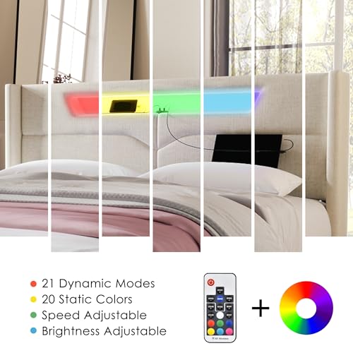 LED-Beleuchtung am Kopfteil des Bettes: Die LED-Beleuchtung am Kopfteil verleiht Ihrem Schlafzimmer einen modernen Touch. Mit Hilfe der Fernbedienung können Sie Farben, Geschwindigkeiten und Helligkeit umsetzen, um je nach Stimmung eine einzigartige Atmosphäre für Ihre Ruhezeit zu pflügen.