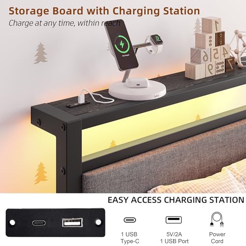 【Praktisches Kopfteil mit Ladestation】 Unser 90 x 200 cm Bettrahmen bietet eine integrierte Ladestation mit versenkten USB- und Steckdosenanschlüssen im stabilen Metallrahmen. Laden Sie Tablets, Smartphones & Co. griffbereit und bequem direkt vom Bett nicht mehr da – niemals zum wiederholten Mal leere Akkus!