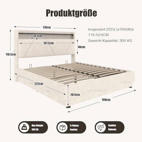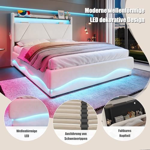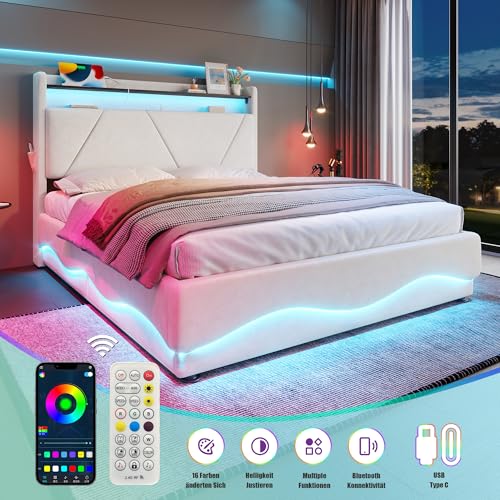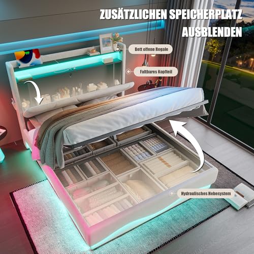 [Gemütliche LED-Ambiente] Genießen Sie wahlweise indirekte Grundbeleuchtung oder fokussiertes Leselicht. Die energiesparenden LED-Streifen an Kopf- und Fußteil verwandeln dieses Stauraumbett mit LED-Beleuchtung in eine Wohlfühloase und setzen stilvolle Akzente in Ihrem Schlafzimmer.