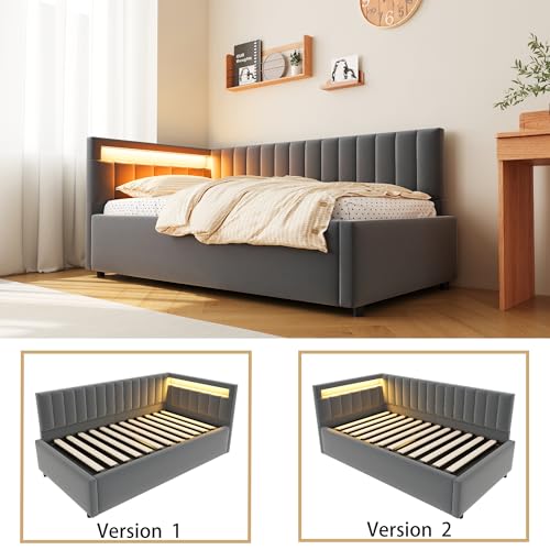Dieses Polsterbett Schlafsofa verfügt über ein Kopfteil mit farbwechselnden LED-Leuchten, so dass Sie das Ambiente ganz einfach über Ihr Smartphone oder Ihre Fernbedienung anpassen können. Der hydraulische Stauraummechanismus dieses Polstersofas bietet versteckten Stauraum, ideal für Ihr Bettzeug und andere wichtige Dinge. Der robuste Lattenrost sorgt für eine lange Lebensdauer, da ja die Rückenlehne und das Kopfteil für einen hohen Komfort sorgen. Die seitlichen Kopfteile sind wendbar und können je nach Raumaufteilung und persönlicher Vorliebe auf der berauben oder rechten Seite nach Maß werden.