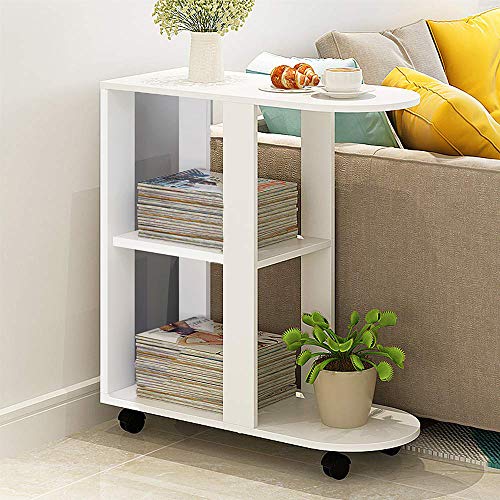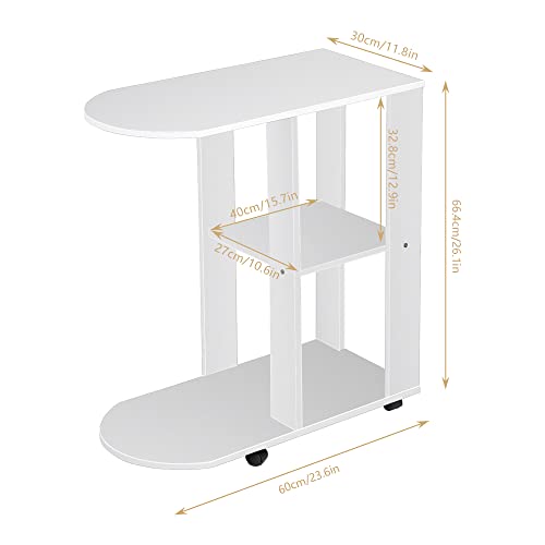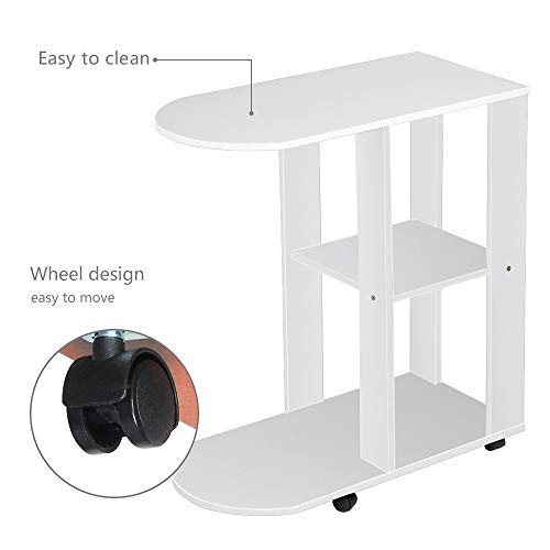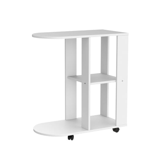 Mit 4 Rollen können Sie diesen weißen Sofa-Beistelltisch mühelos zur Küche, Balkon, Wohnzimmer, Büro oder Schlafzimmer bewegen.