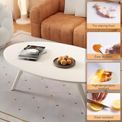Die Tischplatte dieses Couchtisch aus Steinplatte ist kratz-, hitze- und fleckenresistent. Reinigen Sie Verschüttetes einfach wie weggeblasen – perfekt für den Alltag. Die cremefarbene msive Oberfläche garantiert, dass Ihr weißer ovaler Couchtisch stets wie neu aussieht, ob im Wohnzimmer, auf dem Balkon oder in der Loune.