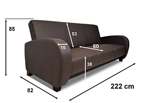 Echtleder 3-er Couch „Mediolan“ 222 cm aufklappbar mit Schlaffunktion 113cm x 190cm und Bettkasten , hergestellt aus dunkelbraun Echtleder „MDR Dark Brown“ mit Nähten in Lederfarbe und mit dunklen Buchenholzbeinen.