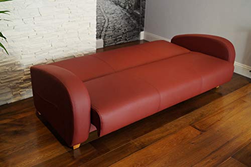 Quattro Meble Weinrot Echtleder 3er Sofa Mediolan Breite 222cm mit Schlaffunktion und Bettkasten Ledersofa Echtledercouch große Farbauswahl!!!