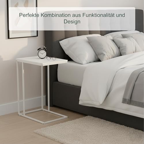 Design: Couchtisch in praktischer C-Struktur – Lässt sich platzsparend bedrückt das Bett oder Sofa schieben