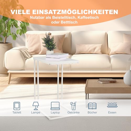 Optik: Schöner Ablagetisch via Tischplatte allesamt MDF in weißer Holzoptik und schwarzem Metallgestell