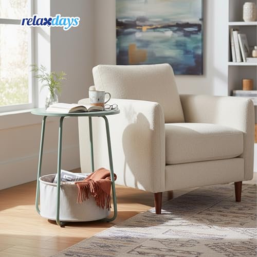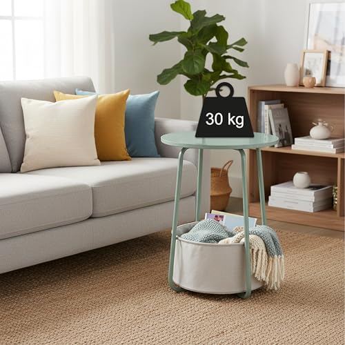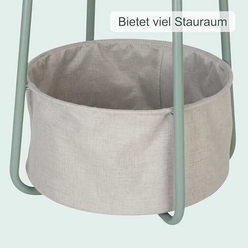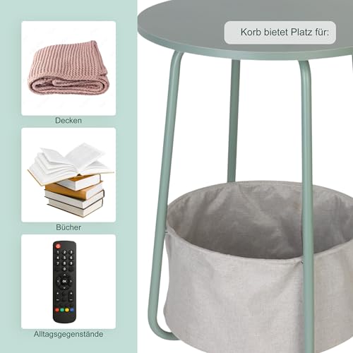 Relaxdays Beistelltisch, runder Couchtisch, mit Stoffkorb, HD: 50×40 cm, Kaffeetisch Wohnzimmer, MDF & Metall, Mint/grau