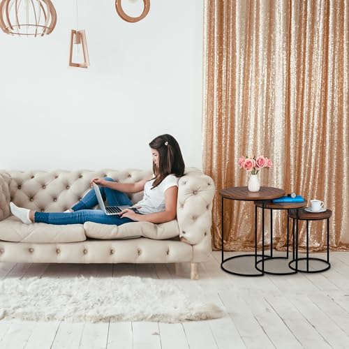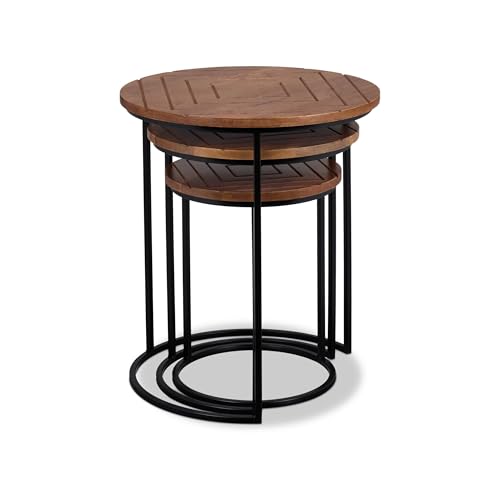 Design: Beistelltische im 3er Set – Dekorative Tischplatte ganz Mangoholz mithilfe schwarzen Metallbeinen
