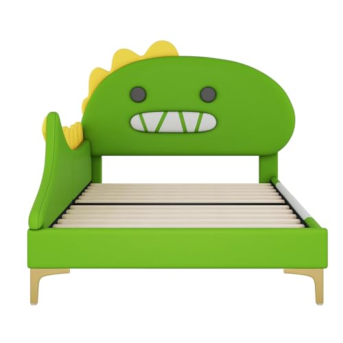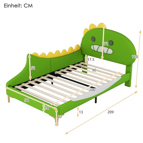 90/140x200cm Kinderbett, Cartoon Dinosaurier Form, Flachbett, PU Material, Grün