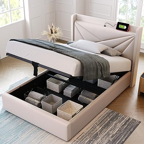 Hydraulikstange: Toller Stauraum Großer Bettkasten unterhalb des hochklappbaren Lattenrosts mit unbegrenzt Stauraum für die Aufbewahrung von Decken, Kissen oder Bettwäsche, Lattenrost durch Hubzylinder leicht hochklappbar.An der Unterseite des Bettes ist ein Oxford-Tuch brauchbar, um Staub fernzuhalten.