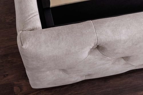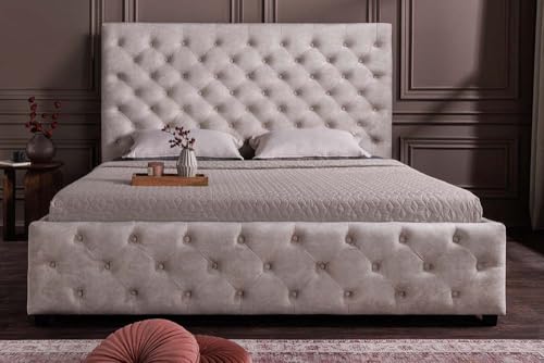 ELEGANT – Design-Bett PARIS als Doppelbett mit champagner-beigem Samtbezug und Chesterfield-Knopfheftung