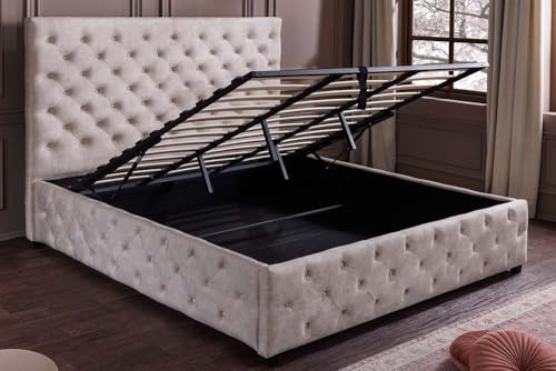 PRAKTISCH – Integrierter Bettkasten mit leichtgängiger Gaslift-Öffnung für müheloses Verstauen von Bettwäsche, Decken und mehr