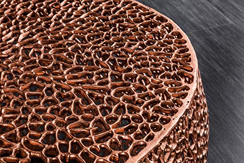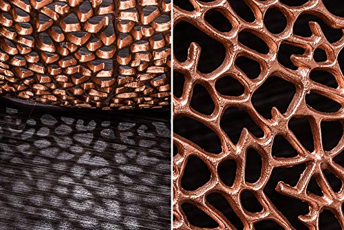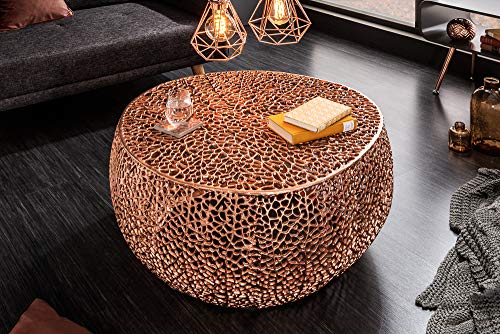 Die leicht asymmetrische Form des Couchtisches verleiht ihm einen ganz besonderen Look, der die organische Gestaltung der Oberfläche gekonnt aufgreift und fortführt. Trotz der kupfer glänzenden Oberfläche scheint der Tisch eine von der Natur inspirierte Aura zu besitzen, sodass er in jedem Wohnzimmer zum Blickfang wird. Das opulente Design des Tisches wirkt für sich, Du brauchst ihn nicht mit massenhaft Dekoration zu umleiten, um ein beeindruckendes Wohnerlebnis zu kreieren. Bei der Votum des Sofas bist Du zudem völlig frei – eine dunkle Couch passt ebenso gut zu dem Couchtisch wie eine helle Wohnlandschaft.