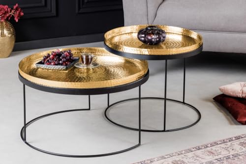 Dieses Couchtisch-Set wird im Handumdrehen zum neuen Lieblingsstück in Deinem Ambiente. Die beiden Tische bestechen mit einem modernen Design. Auf dem schwarzen Metallgestell ruhen zwei runde Tischplatten allesamt hochwertiger Metall-Aluminium-Legierung. Die Tischplatten sind mit besonders in Hülle und Fülle Liebe zum Detail verarbeitet.