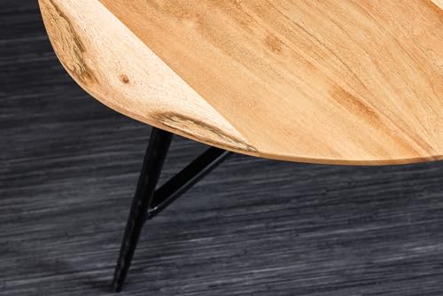 Tauche ein in die Welt natürlicher Eleganz mit dem Couchtisch BEAUTY BY NATURE! Hergestellt aus massivem Akazienholz mit einer natürlichen Maserung und einem schwarzen Metallgestell, strahlt dieser Tisch eine zeitlose Schönheit aus. Die formschön gestaltete Schweizer Kante rundet das zeitlose und im Gegensatz dazu künstlerische Design des Couchtisches ab. Freue Dich auf einen natürlichen Look mit Deinem neuen Couchtisch!