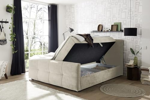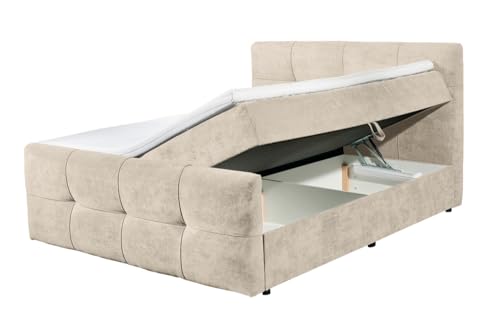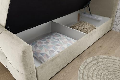 Mit einer bequemen Tonnentaschenfederkernmatratze (Härtegrad 3) und einer zusätzlichen Bonell-Federkern-Polsterung sorgt es für optimalen Druckausgleich und angenehmen Liegekomfort. Der integrierte Komfortschaum-Topper rundet das Schlafgefühl ab und macht jede Nacht zu einem erholsamen Erlebnis. Außergewöhnlich praktisch: Das Bett verfügt über einen geräumigen Bettkasten, der unten der hochklappbaren Matratze zusätzlichen Stauraum für Decken, Kissen und Wahlmöglichkeit Utensilien bietet. Dieses Bett ist nicht immerhin funktional, sondern aka „made in Europe“.
