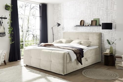 Das zeitlose Design in beige Strukturstoff fügt sich abgerundet in jede Schlafzimmergestaltung ein. Entdecke das Boxspringbett TOULOUSE und genieße traumhaften Schlafkomfort auf höchstem Niveau!