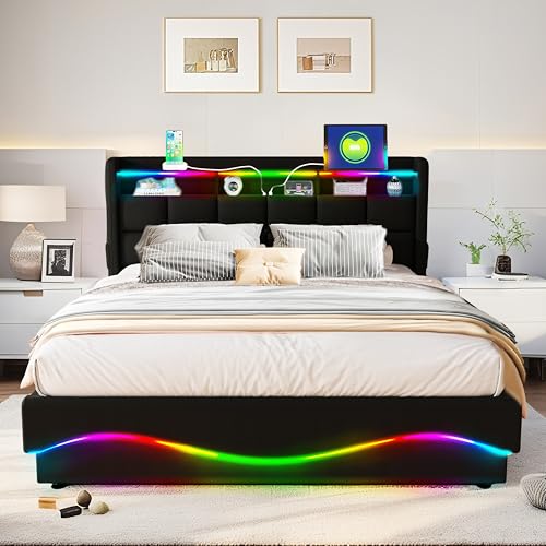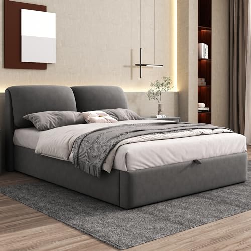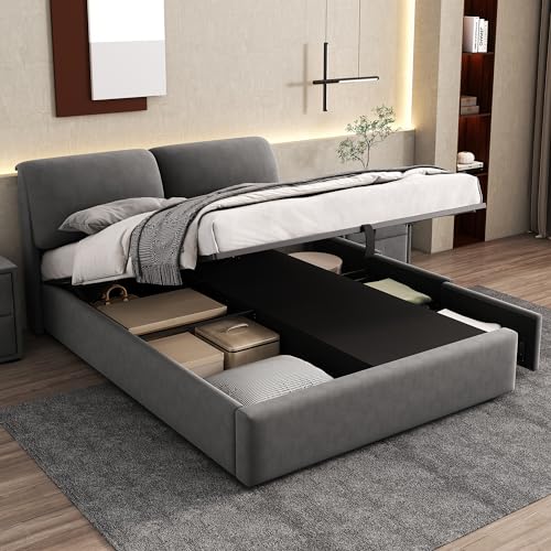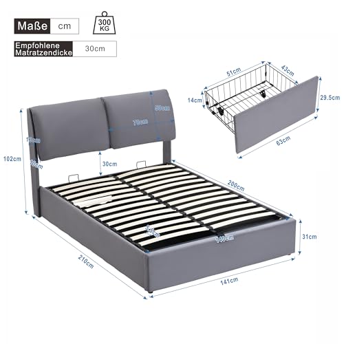 【Hydraulische Bettrahmenkonstruktion】 Das Design des hydraulischen Bettes macht es Ihnen leicht, den Bettkasten zu anfangen und Ihre Gegenstände darin zu verstauen. Dieses Design macht die Aufbewahrung noch bequemer.