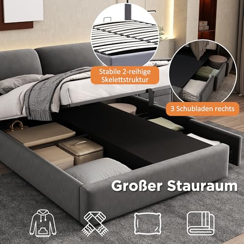 【Massenweise Stauraum】 Auf einer Seite des Bettes befinden sich drei Schubladen, und der Bettkasten bietet Massenweise Stauraum. In diesen Bereichen können Sie Ihre Bettwäsche, Kleidung oder Auswahlmöglichkeit Gegenstände aufbewahren, um Ihr Schlafzimmer hübsch und organisiert zu halten.