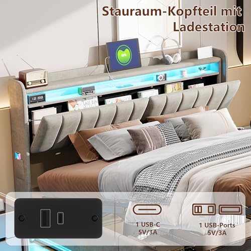 Kopfteil mit Stauraum und USB-Anschlüssen: Eines Bett 140×200 der praktischsten Features ist die integrierte Steckdose am Kopfende des Bettes, über die Sie Ihre Telefone und Tablets vor dem Schlafengehen aufladen können. Jede Steckdose verfügt über einen USB-Anschluss Innovative