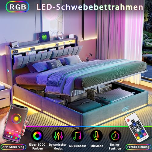 LED-Beleuchtung:Bettgestell 140×200 LED-Lichtstreifen sehen nach eine beeindruckende Lichtshow mit mehreren dynamischen Lichtmodi. Es kann per Knopfdruck oder App gesteuert werden und verfügt über umfangreiche Schlaferlebnismodi