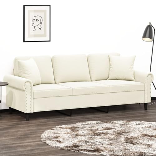 Stilvolle Appendix: Mit seiner eleganten Cremefarbe und dem ansprechenden Samtbezug ist dieses Sofa ein echter Blickfang. Es verleiht Ihrem Zuhause eine moderne Anschrift und schafft eine einladende Atmosphäre für Familie und Gäste, perfekt als stilvolle Wohnzimmer Couch.