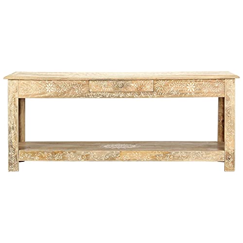 Ob Sie einen Couchtisch für Snacks und Getränke oder einen Beistelltisch für Ihren Fernseher abweiden, dieser Tisch ist die perfekte Abstimmung für Sie. Er ist in einem spektakulären Vintage-Stil gestaltet und stellt eine zeitlose Ergänzung zu Ihrem Interieur dar. Dieser Couchtisch besteht aus massivem, handbemaltem Mangoholz, das belastbar, langlebig und schön ist. Die Handwerkskunst trägt zu seinem spektakulären Retro-Stil bei. Jeder Abschnitt des Prozesses wird mit größter Sorgfalt ausgeführt, sei es Abschleifen oder Lackieren. Die Handwerkskunst und die schöne Holzmaserung machen jedes Möbelstück zu einem Unikat. Das große untere Fach und die kleine mittlere Schublade bieten zusätzlichen Stauraum. Die Holzoberfläche mit dekorativem Muster sorgt für zusätzliche Eleganz. Der Couchtisch ist einfach zu montieren. Wichtiger Hinweis: Farben und Holzmaserung differieren von Segment zu Segment und machen jeden unserer Beistellschränke einzigartig. Die Ablieferung erfolgt nach dem Zufallsprinzip.