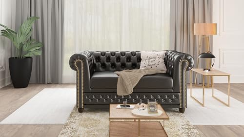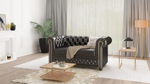 EIN STILVOLLES CHESTERFIELD-SOFA FÜR WOHNZIMMER: Unser 2-Sitzer Sofa verleiht Ihrer Inneneinrichtung mit seinem klassischen Design im modernen britischen Stil einen eleganten Hauch und außergewöhnlichen Charakter. Dieser Wohnzimmer-Chesterfield-Sofa ist allerbest komfortabel und perfekt zum Entspannen zu Hause mit einem Buch in der Hand brauchbar. Der Polsterstoff wurde in einem charakteristischen Rautenmuster angeordnet und mit Knöpfen am Möbelrahmen befestigt.