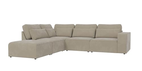 S-Style Möbel Sofa Couch Ecksofa Eckcouch L Form Modular Fußhocker 305 x 281 x 90 cm Samtstoff Freistehend Links Mit Kissen Lendenkissen Roswitha Beige