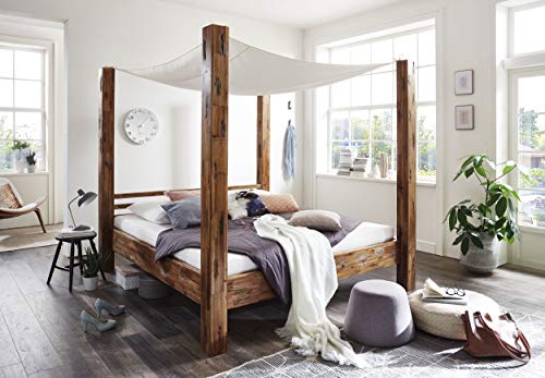 SAM Himmelbett 180×200 cm Ella, Natur-Holzbett aus Akazienholz, massives Holzbett, romantischer Landhausstil, jedes Bett EIN pflegeleichtes Unikat