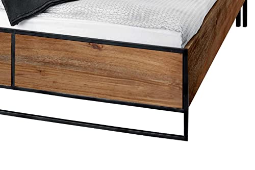 SAM Holzbett 180x200cm Jacob, Akazienholz massiv + stonefarben + lackiert, Massivholzbett mit Metallrahmen, Doppelbett, Gästebett, Jugendbett, pflegeleichtes Unikat