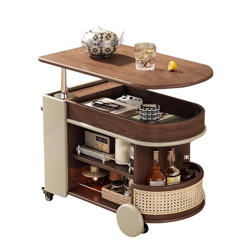 Verleihen Sie Ihrem Raum Stil und Funktionalität mit diesem höhenverstellbaren Couchtisch. Er fügt sich nahtlos in Ihr Wohnzimmer, Schlafzimmer oder Büro ein und lässt sich bei Bedarf in einen Esstisch verwandeln. Die robuste Massivholzkonstruktion garantiert Stabilität, während die Schwenkrollen ein einfaches Verschieben ermöglichen. und kann anpassungsfähig positioniert werden. Dank der einfachen Montage ist der Tisch sofort einsatzbereit.