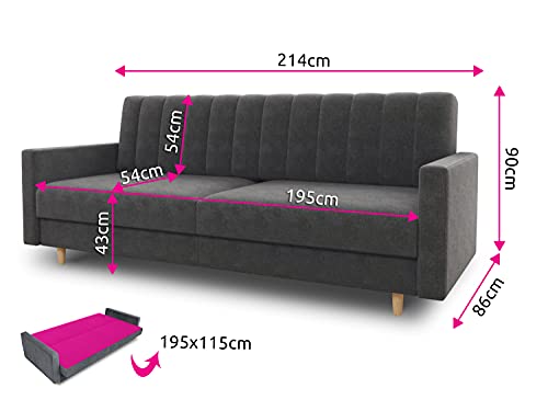 Sofa unter Zuhilfenahme von Schlaffunktion (Schlaffläche: 195×115 cm)
