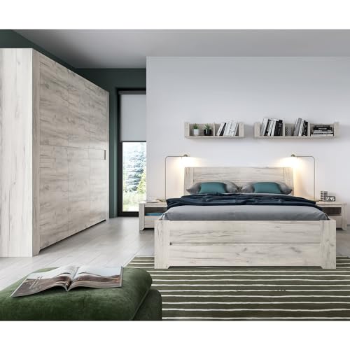 Schlafzimmer Set Snow Bettgestelle Nachttisch Sideboard Kleiderschrank (Mit Lattenrost)