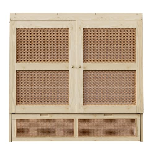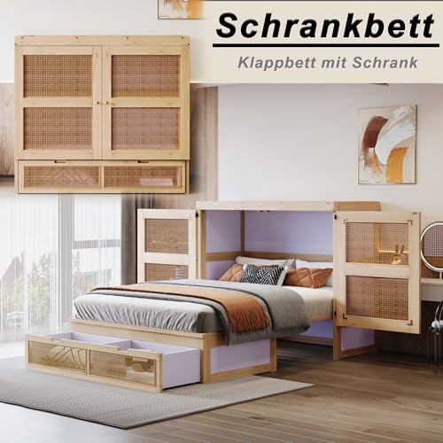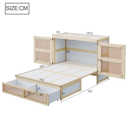 Rattan-Design: Dieses Murphy-Bett ist im Stil eines Schranks gestaltet, wobei die Schranktüren und Schubladentüren anstelle des traditionellen Designs mit Rattan geflochten sind, was ihm einen modischen Stil verleiht und es mit verschiedenen Raumstilen harmoniert.