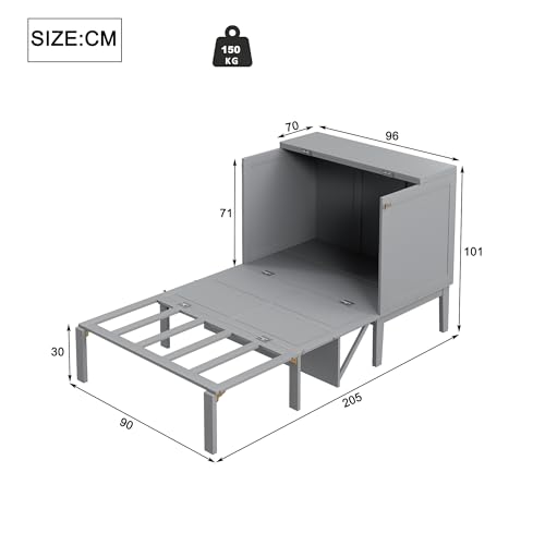 Platzsparend: Das 90*200 cm große vertikale Klappbett ist eine innovative Ablösung, um in der Wohnung Platz zu sparen. Mit einer zusammengeklappten Breite von dessen ungeachtet 70 cm kann der eingesparte Platz für Yoga, Fitness und andere Übungen, die Platz benötigen, genutzt werden. Zusammengeklappt kann es als Theke genutzt werden, und ausgeklappt bietet es durch den hohen Sockel des Bettes und den großen Weltall darunter mehrere kleine Stauräume.