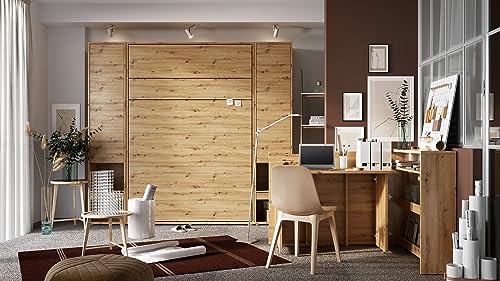 Concept, Klappbett durch Lattenrost, V-Bett, Wandbettschrank durch integriertem Klappbett, Funktionsbett Derzeitig 140 x 200 Artisan Oak Vertikal