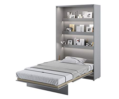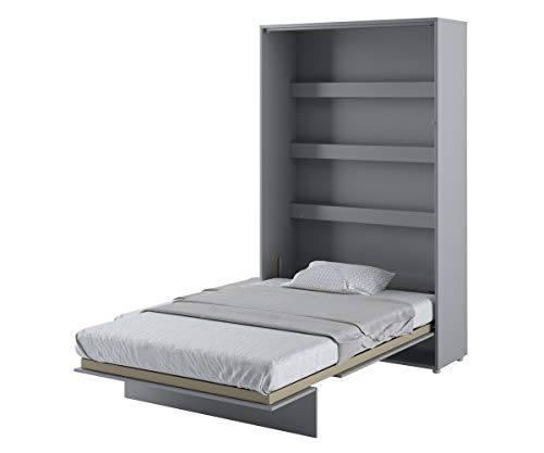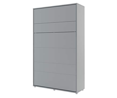 Concept, Klappbett per Lattenrost, V-Lager, Wandbettschrank per integriertem Klappbett, Funktionsbett Gegenwärtig 120 x 200 Mattgrau vertikal.