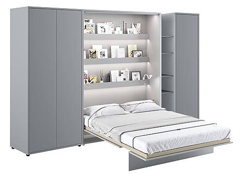 Bed Concept Schrankbett, Schrankklappbett über Lattenrost, V Bett, Wandbett, Bettschrank, Schrank über integriertem Klappbett, Funktionsbett BC 12, 160 x 200 cm, Unmodern/Unmodern, vertikal
