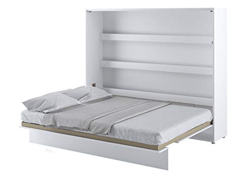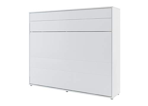 Schrankbett Bed Concept, Wandklappbett unter Einsatz von Lattenrost, V-Lager, Wandbett Bettschrank Schachtel unter Einsatz von integriertem Klappbett Funktionsbett (BC-14, 160 x 200 cm, Weiß/Weiß, Horizontal)