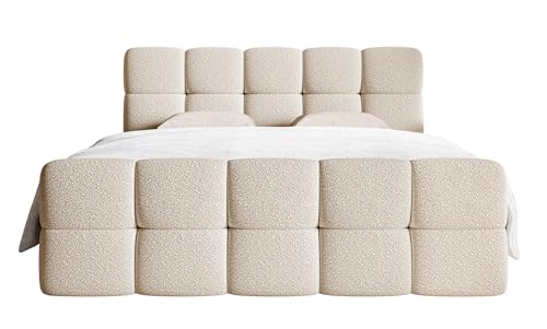 Stauraum für Bettwäsche: Ja; Farbe der Füße: Schwarz; Kopfteilart: Horizontale und vertikale Nähte; Rahmenmaterial: Möbelplatte, Holz; Verfügbares Licht: Nein; Basis: Box; Matratzenart: Bonellfederker.