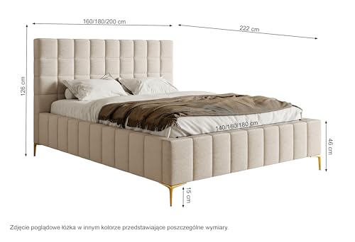 Liegefläche: 180 x 200 cm; Matratze nicht im Lieferumfang enthalten; Rahmen enthalten: Ja; Farbe der Füße: Gold.