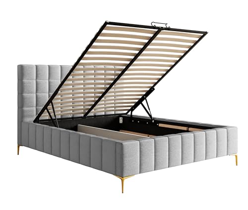 Das stilvolle Polsterbett vereint Glamour auch Positiv: Mithilfe großzügigem Bettkasten, eleganten goldenen Füßen auch perfektem Design – dein Attraktion im Schlafzimmer!