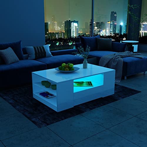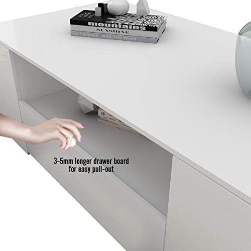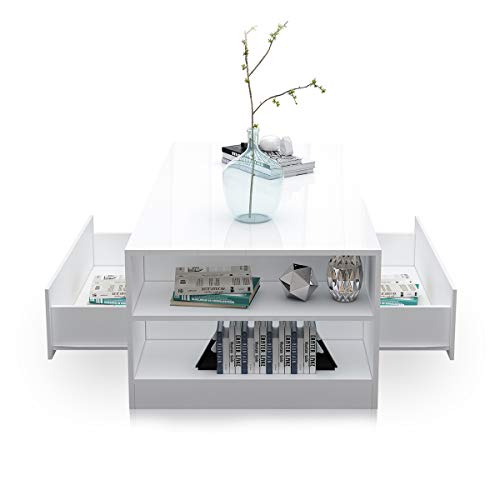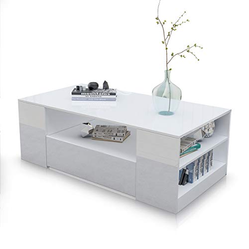 ✅HOCHWERTIGES MATERIAL: Couchtisch die Gesamtheit hochwertiger, langlebiger und umweltfreundlicher laminierter Spanplatte, die Frontplatte mit UV-Hochglanz-Finish und der Rest des Körpers mit einem matten Finish, das Ihrem Wohnzimmer mehr modernen Stil verleiht.
