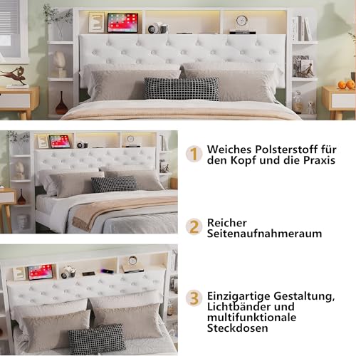 Bett mit LED und USB-Ladefunktion: Die integrierte LED-Leiste am Kopfteil schafft eine gemütliche Atmosphäre. Mit der Fernbedienung oder App können Sie die Farben individuell drauf setzen. Dank des USB-Anschlusses lädt Ihr Smartphone direkt neben dem polsterbett 140×200 mit led und usb, ganz ohne zusätzliche Steckdosen