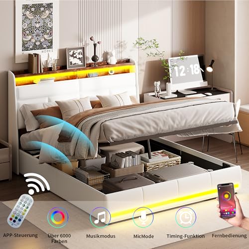 Praktischer Stauraum für Ordnung: Das hydraulische Stauraumbett bietet großzügigen Platz für Bettwäsche und Kleidung. Dank der leicht zugänglichen Bettkasten-Gepräge lässt sich das Doppelbett mühelos öffnen und suffigieren. Ideal für kleine Wohnungen oder Schlafzimmer mit begrenztem Platz